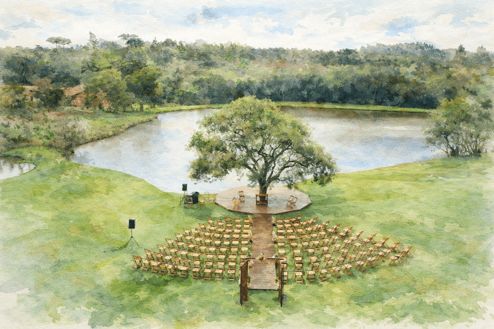 A cerimônia será rápida e tentaremos ser extremamente pontuais para aproveitar o máximo da festa. Contamos com vocês! Dia 29 de agosto de 2026, às 15:30 h. Chácara Sentinela do Imbuial. Endereço: R. Aleixo Nodari, nº - Imbuial, Colombo - PR, 83415-250.